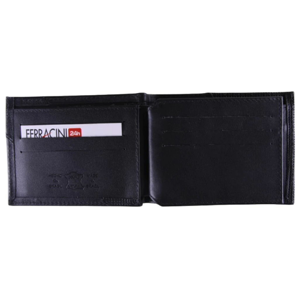 A carteira masculina Ferracini CF383A é perfeita para quem busca praticidade, estilo e durabilidade no dia a dia. Confeccionada em couro legítimo, ela oferece um acabamento sofisticado e resistente, além de um toque macio e estrutura firme. O modelo horizontal conta com espaço interno inteligente: compartimentos para cédulas, porta-cartões, espaço para documentos e CNH, além de acabamento interno com forro personalizado da marca. Compacta, leve e funcional, a carteira é ideal para quem precisa manter tudo organizado sem abrir mão do design moderno e discreto. Detalhes da logomarca em relevo conferem autenticidade e elegância à peça.