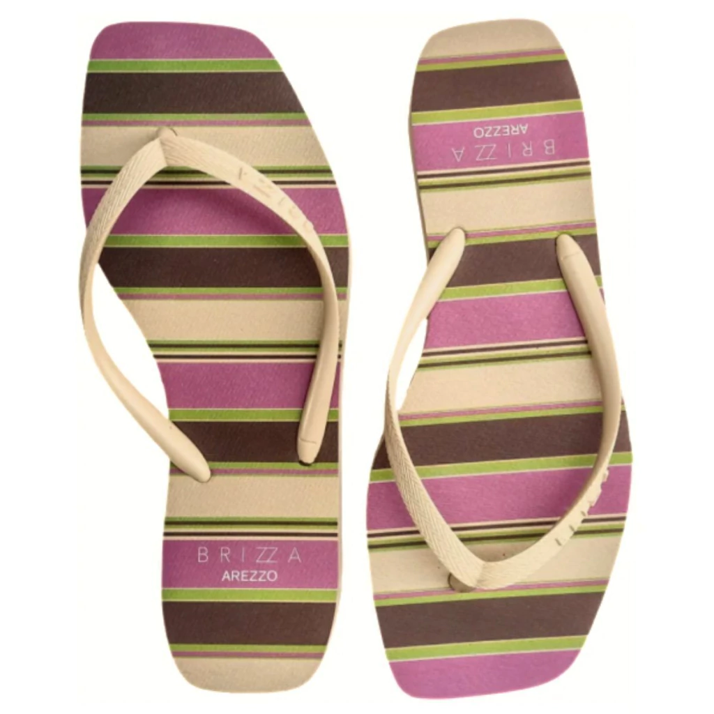 O chinelo Brizza Arezzo modelo Z19027 0201 é a escolha perfeita para quem busca estilo e conforto nos dias mais quentes. Com tiras finas e texturizadas, esse modelo traz uma pegada sofisticada e despojada ao mesmo tempo. A palmilha com estampa listrada colorida proporciona um toque moderno e alegre, enquanto o solado emborrachado garante segurança ao caminhar. Ideal para acompanhar looks de verão, saídas casuais e até produções à beira-mar.