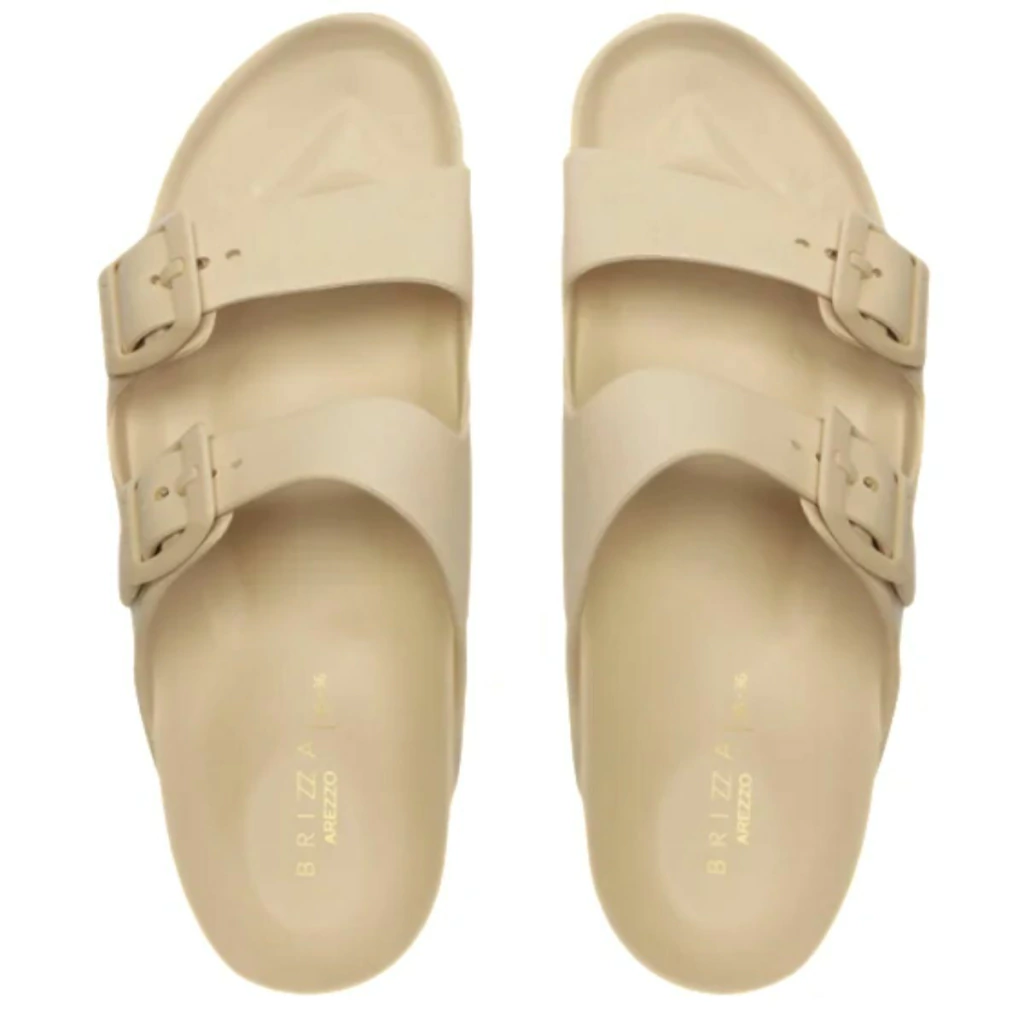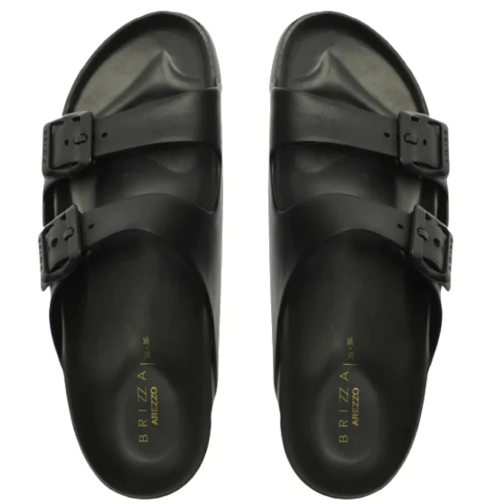 O Chinelo Papete Brizza Arezzo Z19060 0001 é a escolha ideal para quem busca um visual moderno com o conforto típico da linha Brizza. Inspirado nas clássicas sandálias Birken, este modelo traz duas tiras largas no cabedal e solado anatômico, proporcionando um encaixe firme e agradável ao caminhar.