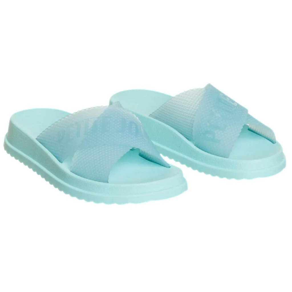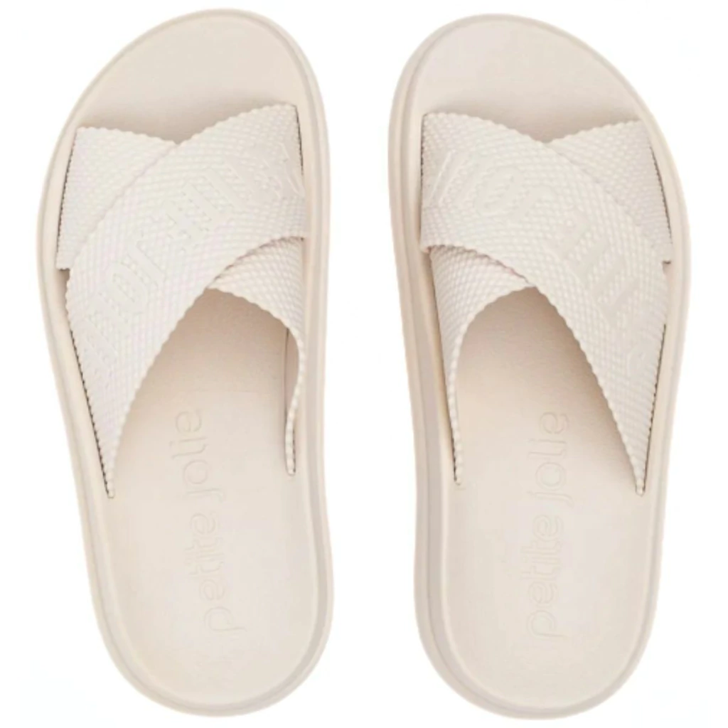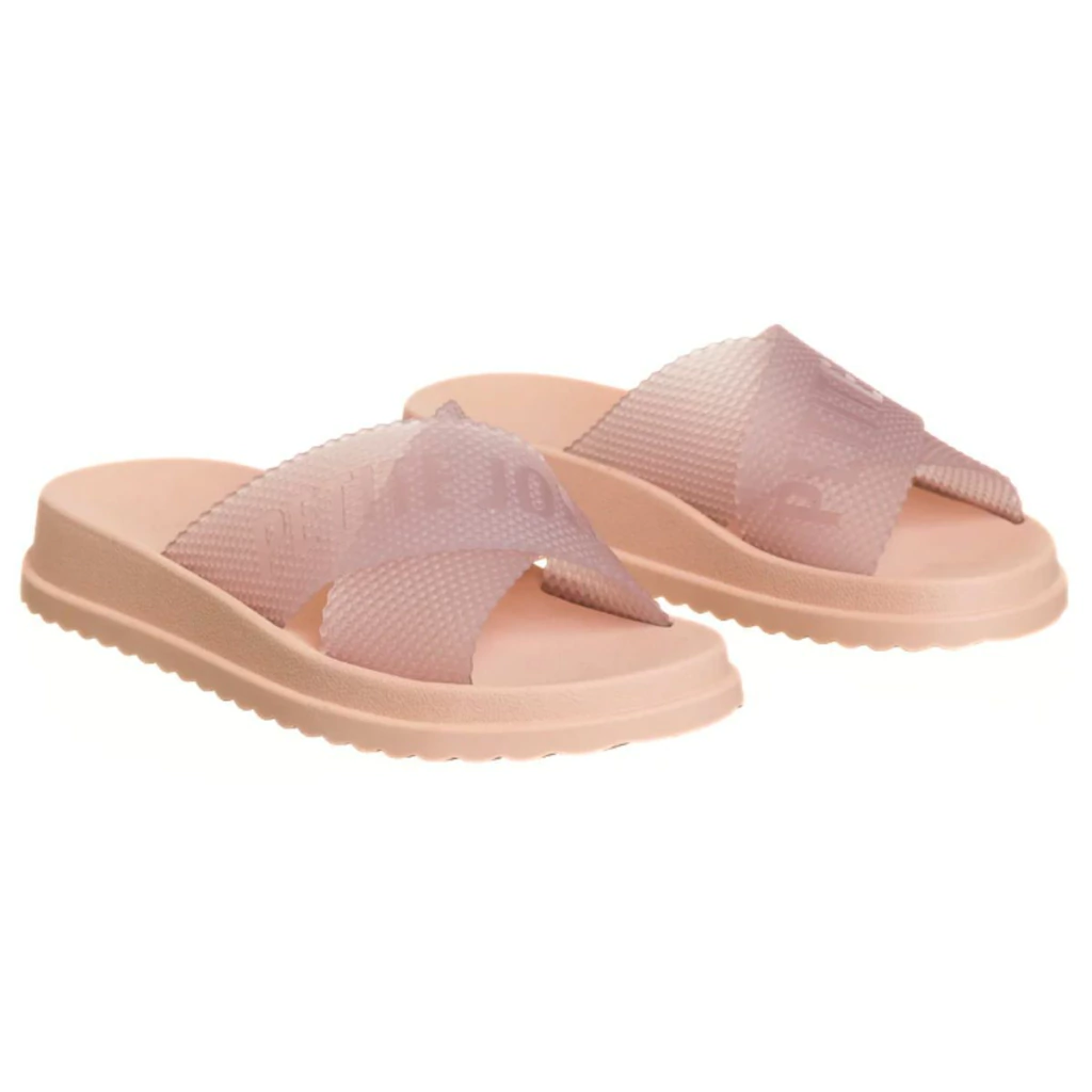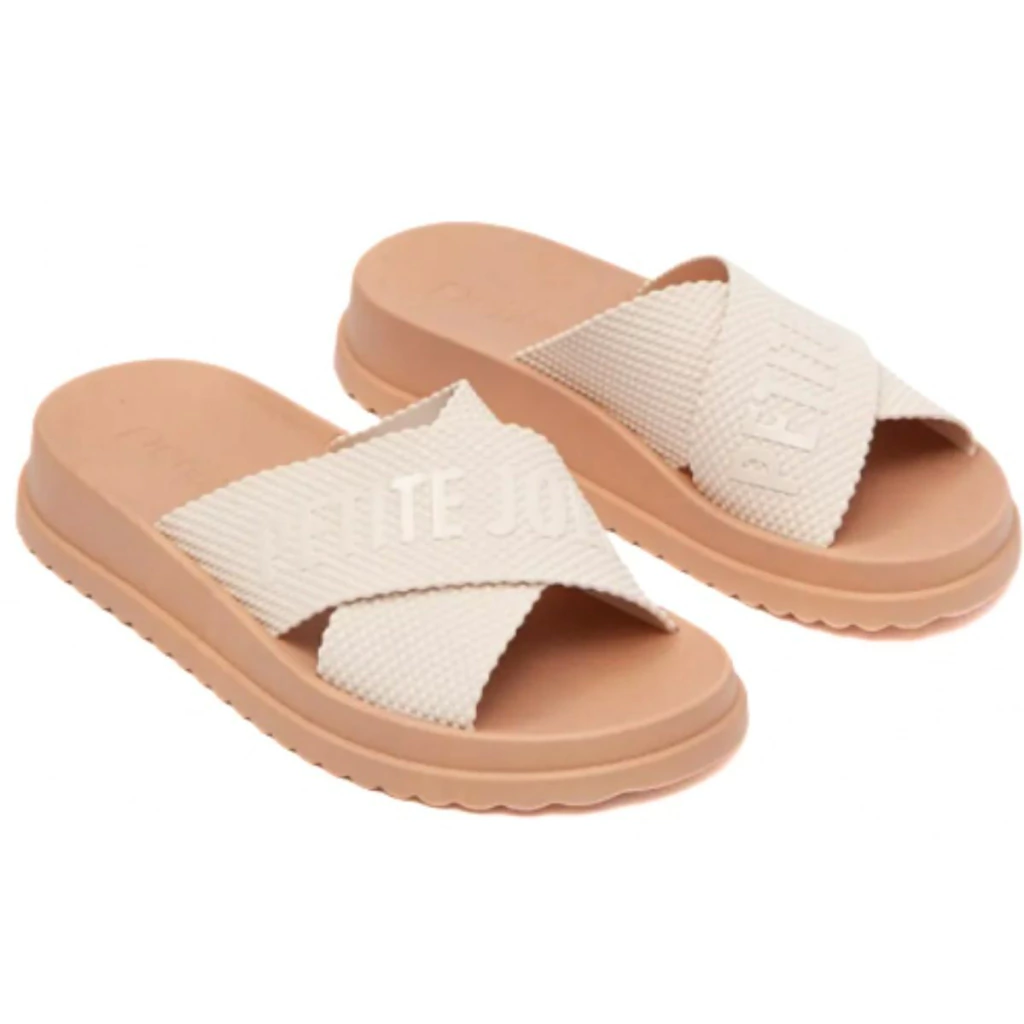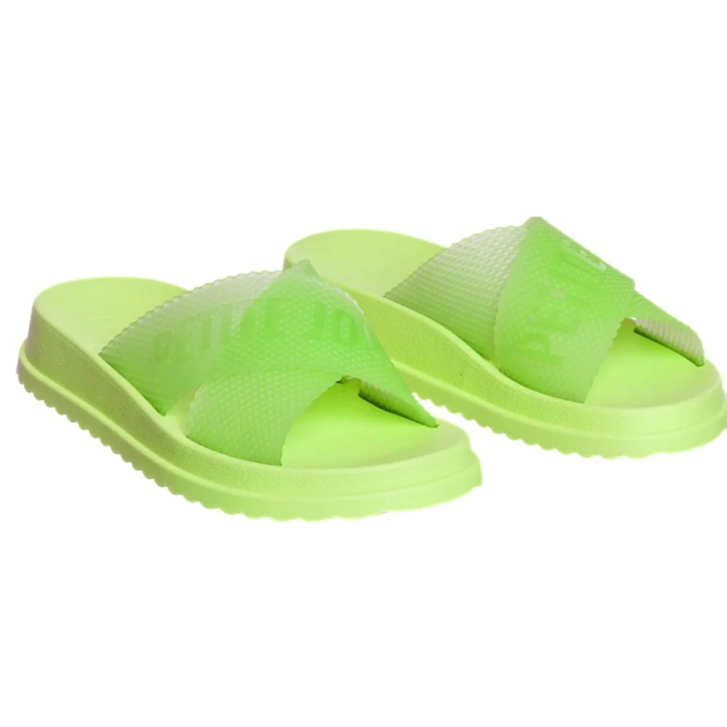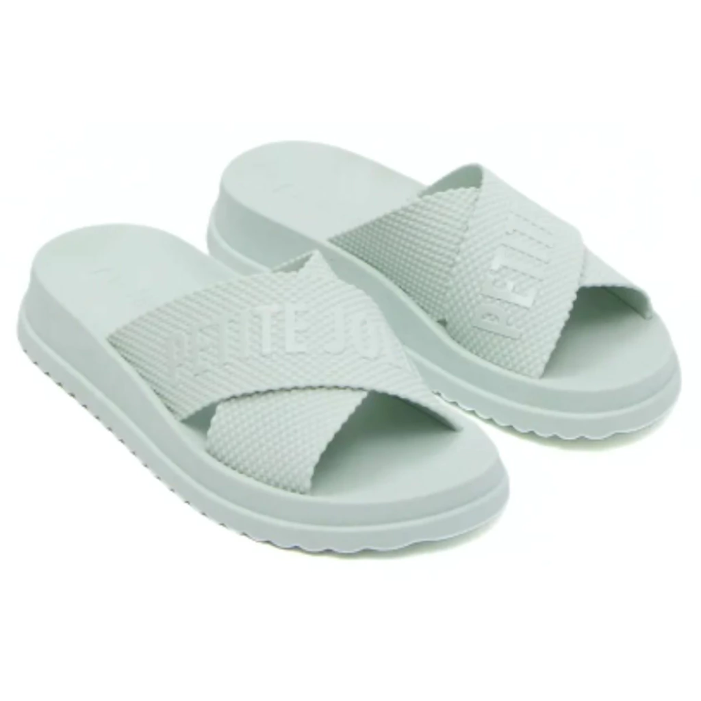 Chinelo Feminino Petite Jolie Smash PJ6812II é um modelo de chinelo slide feminino da marca Petite Jolie, conhecido por seu design moderno e conforto excepcional. Fabricado com o material exclusivo J-Lastic Soft, um PVC expandido mais macio e impermeável, o chinelo possui duas tiras largas cruzadas sobre o pé com texturas e aplicação do logo da marca em destaque. O solado é levemente tratorado, proporcionando maior aderência e segurança ao caminhar. Com altura de salto de aproximadamente 3 cm, é ideal para uso diário, seja em ambientes urbanos ou na natureza.