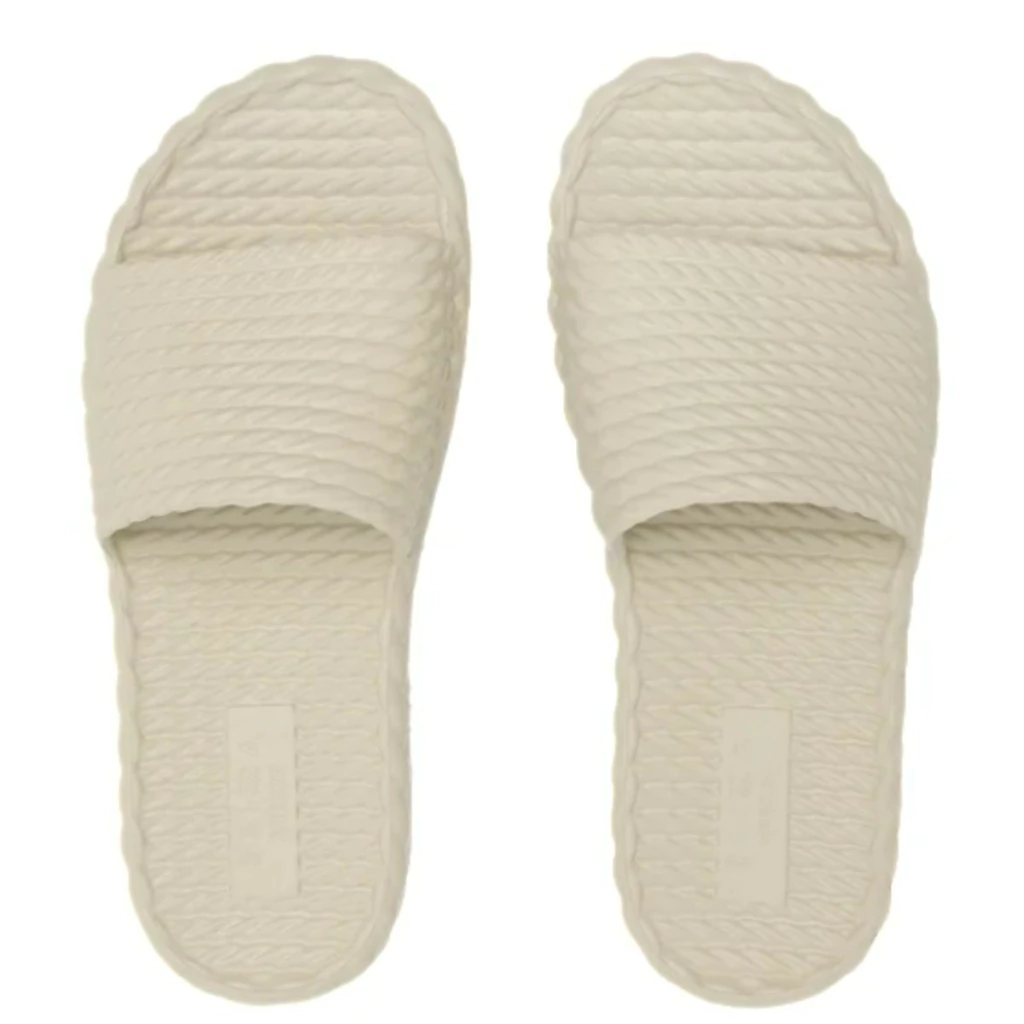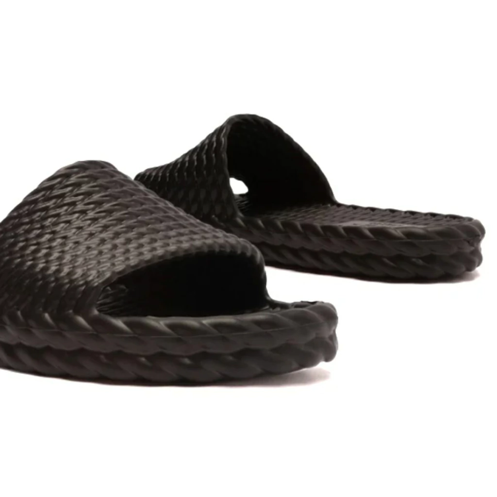 O Chinelo Slide Marrocos Brizza Arezzo Z19041 0001 é uma opção estilosa e confortável para o dia a dia. Confeccionado em EVA, possui sola rasteira flat com design que imita tiras de cordão torcido e palmilha texturizada com aspecto tramado. A tira larga sobre os dedos também apresenta textura tramada, proporcionando um visual moderno e elegante. O modelo é aberto, exibindo todo o pé, ideal para compor looks casuais e descontraídos.