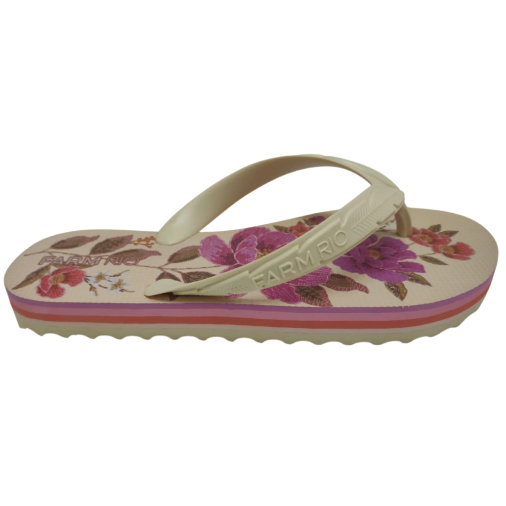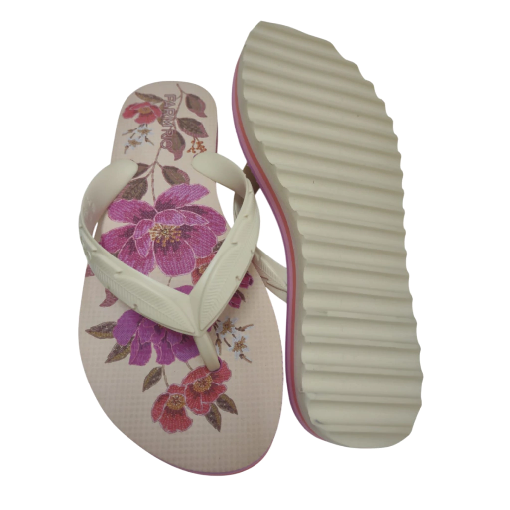 O Chinelo Feminino FARM Rio combina conforto e estilo tropical em um design leve, colorido e vibrante. Ideal para dias quentes, traz estampas exclusivas que representam a alma brasileira, com tiras macias e sola emborrachada para garantir estabilidade e bem-estar a cada passo. Um item essencial para quem ama moda descontraída e autêntica.