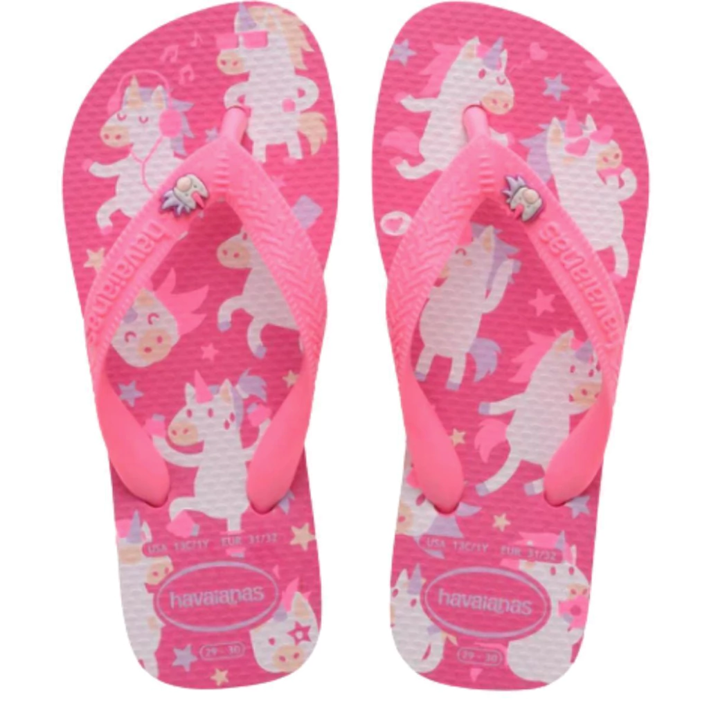As Havaianas Kids Fantasy trazem um toque mágico e encantador para o dia a dia das crianças. Com estampas coloridas e divertidas inspiradas em elementos lúdicos, como unicórnios, sereias e criaturas mágicas, esse modelo combina conforto, leveza e muita imaginação. O solado macio e as tiras flexíveis garantem liberdade nos movimentos para brincar o dia inteiro.