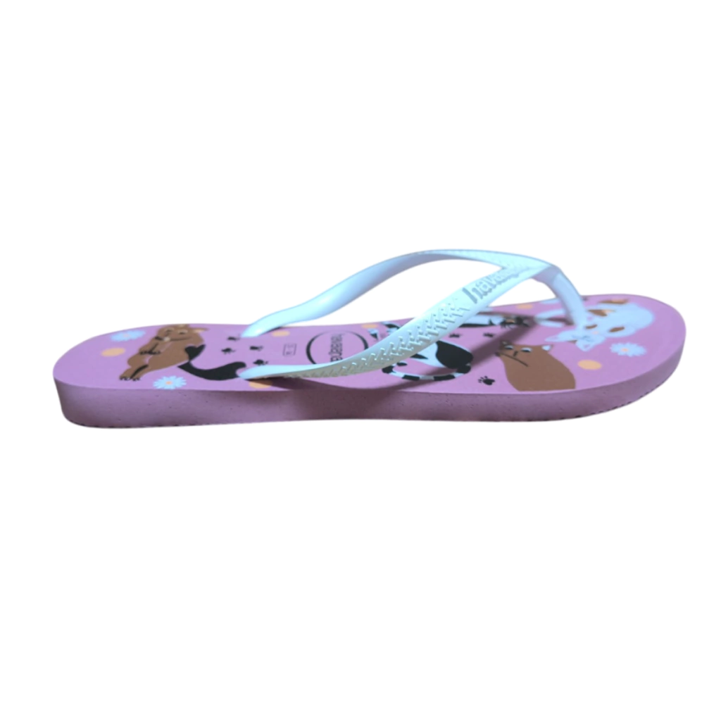 As Havaianas Slim Pets FC são perfeitas para quem ama conforto e tem paixão por pets. Com tiras finas e design exclusivo com estampas de animais fofinhos, elas unem estilo e carinho em cada passo. Fabricadas com a tradicional borracha macia da Havaianas, oferecem leveza e durabilidade para o dia a dia.