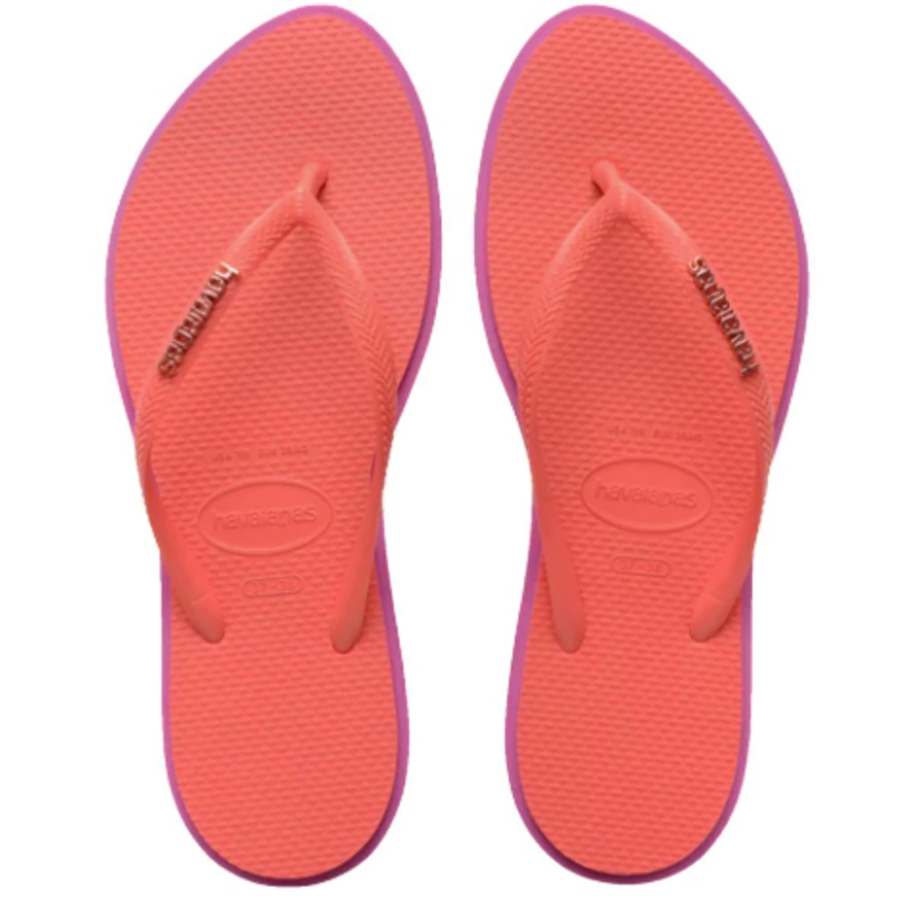A Havaianas Slim Point traz um toque fashionista para o clássico chinelo Slim. Com bico levemente fino e solado de dupla camada em cores contrastantes, o modelo une estilo e conforto na medida certa. As tiras finas com acabamento metálico e o logo Havaianas aplicado garantem sofisticação, enquanto a palmilha texturizada e o solado de borracha proporcionam segurança e bem-estar ao caminhar. Ideal para compor looks casuais com um toque de elegância, o Slim Point é a escolha perfeita para quem busca modernidade e praticidade no dia a dia.