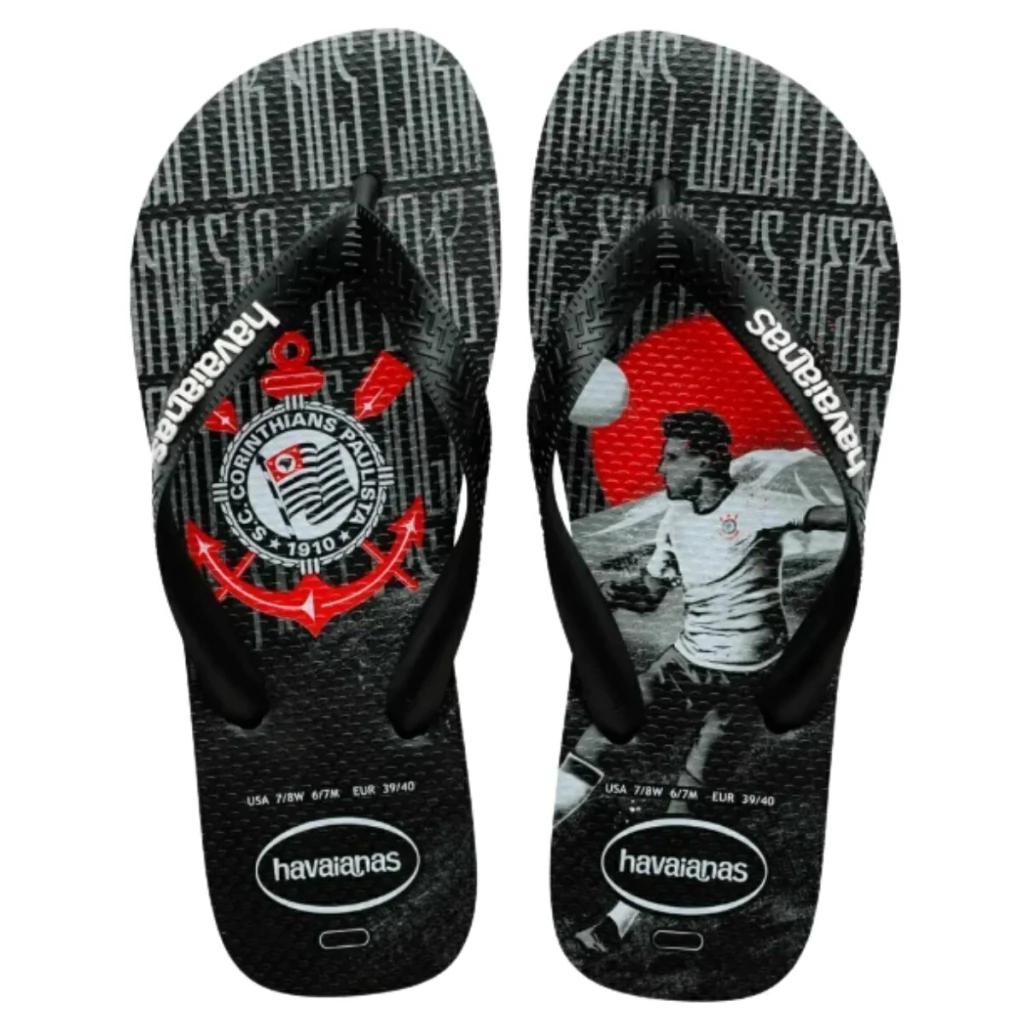 As Havaianas Top Times unem o conforto tradicional da marca com estampas exclusivas dos principais clubes de futebol do Brasil. Confeccionadas em borracha macia e resistente, possuem tiras largas e anatômicas que proporcionam ajuste seguro, além de solado antiderrapante que garante estabilidade ao caminhar. Cada modelo traz as cores e símbolos do time, permitindo que o torcedor leve sua paixão para qualquer ocasião casual.
