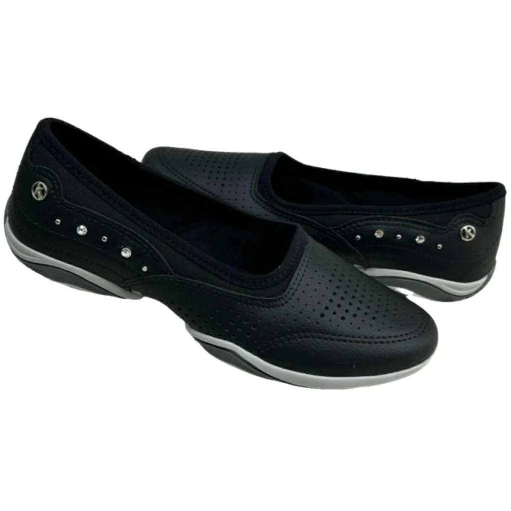 O Tênis Kolosh Slip On C2749 é a escolha ideal para quem busca conforto e praticidade no dia a dia. Seu design estilo sapatilha sem cadarço facilita o calce, enquanto o cabedal em material sintético com microfuros proporciona respirabilidade e leveza. Detalhes em pedrarias aplicadas conferem um toque de elegância ao modelo. A palmilha Impulse, com dupla camada de espuma, oferece amortecimento e conforto prolongado. Com solado de borracha e salto de aproximadamente 2 cm, é perfeito para uso casual e combinações versáteis.