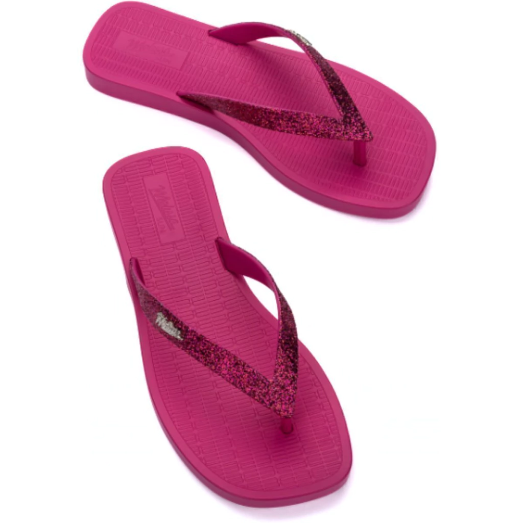 O chinelo Melissa 35781 Sun Long Beach II é a escolha perfeita para quem busca praticidade, conforto e um toque fashion nos dias quentes. Com design moderno e despojado, ele conta com tiras largas e texturizadas que proporcionam um encaixe firme nos pés, além de adicionar um charme extra ao visual. Fabricado em Melflex, material exclusivo da Melissa, oferece leveza, maciez e durabilidade, além de ser 100% vegano e reciclável. A palmilha anatômica garante conforto prolongado, enquanto o solado emborrachado traz mais segurança ao caminhar. Ideal para o dia a dia, passeios ao ar livre ou até produções casuais com estilo.