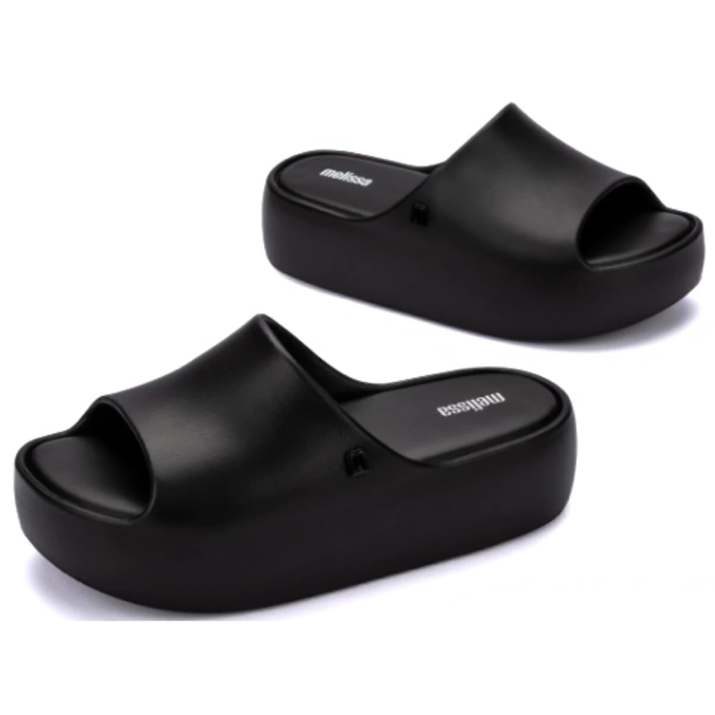 A Melissa Free Platform Slide 35859 combina design moderno e conforto elevado em uma sandália tipo slide com plataforma. Produzida em EVA monobloco, ela entrega leveza e estilo no dia a dia, com solado robusto que eleva o visual com praticidade.Com aproximadamente 5 cm de altura de plataforma, a Melissa Free Platform Slide oferece um ganho de altura sutil e elegante, sem perder o conforto característico da linha “Free”. A parte superior segue o estilo slide, facilitando o calce rápido, e o solado antiderrapante garante segurança ao caminhar. Ideal para looks casuais com um toque fashionista, a peça oferece versatilidade, leveza e estilo.