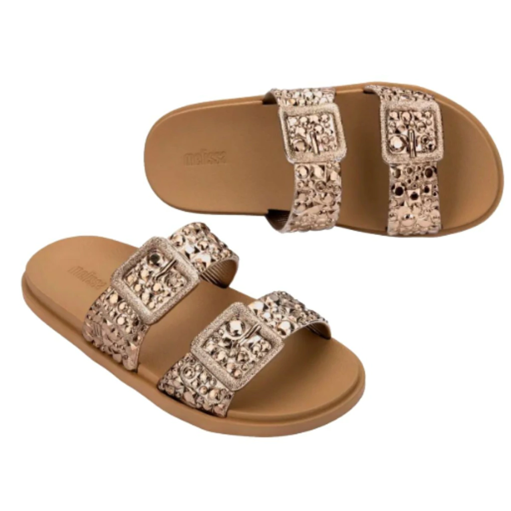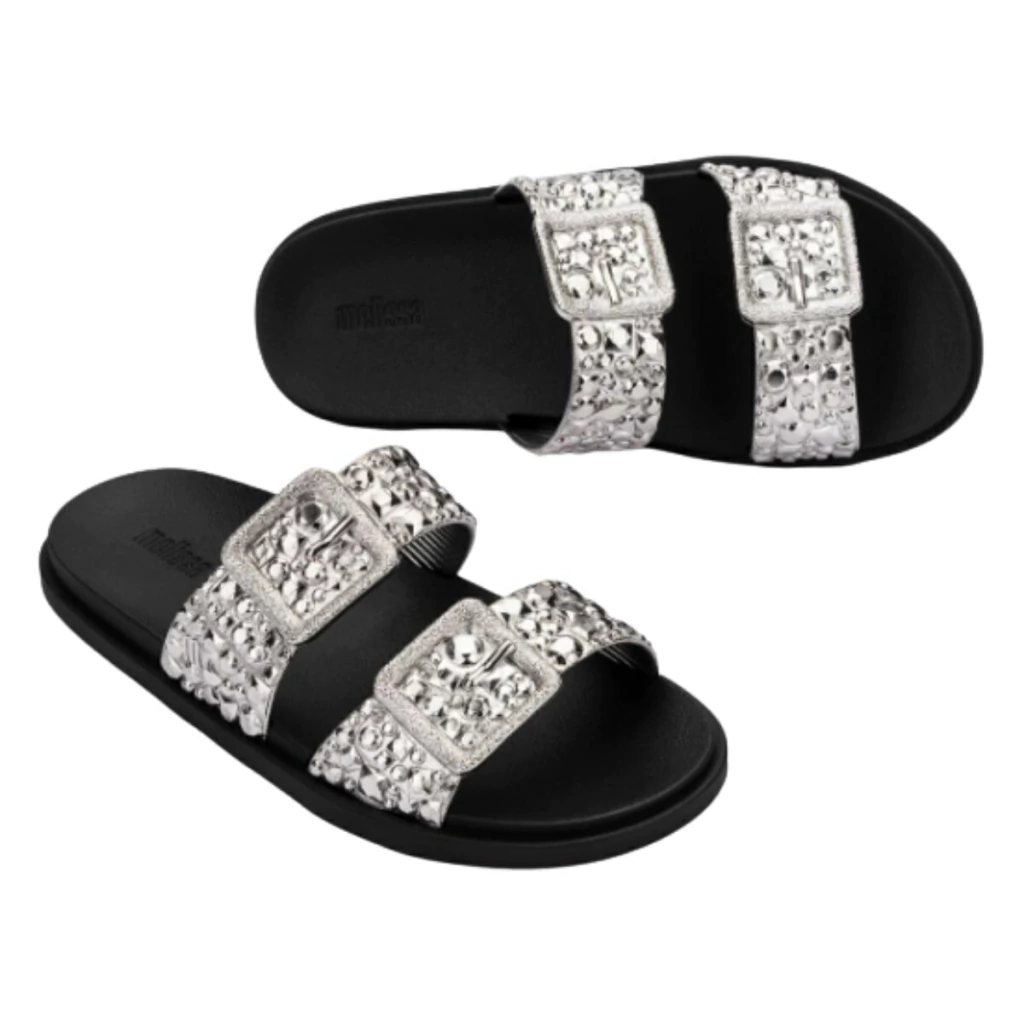 Melissa Lust Slide 35743 é uma sandália slide feminina que combina estilo e conforto. Com tiras ajustáveis e efeito cromado, ela é perfeita para compor looks casuais e descolados. Fabricada em Melflex®, material sintético patenteado, é 100% vegana, reciclável e possui o tradicional aroma de chiclete Melissa.