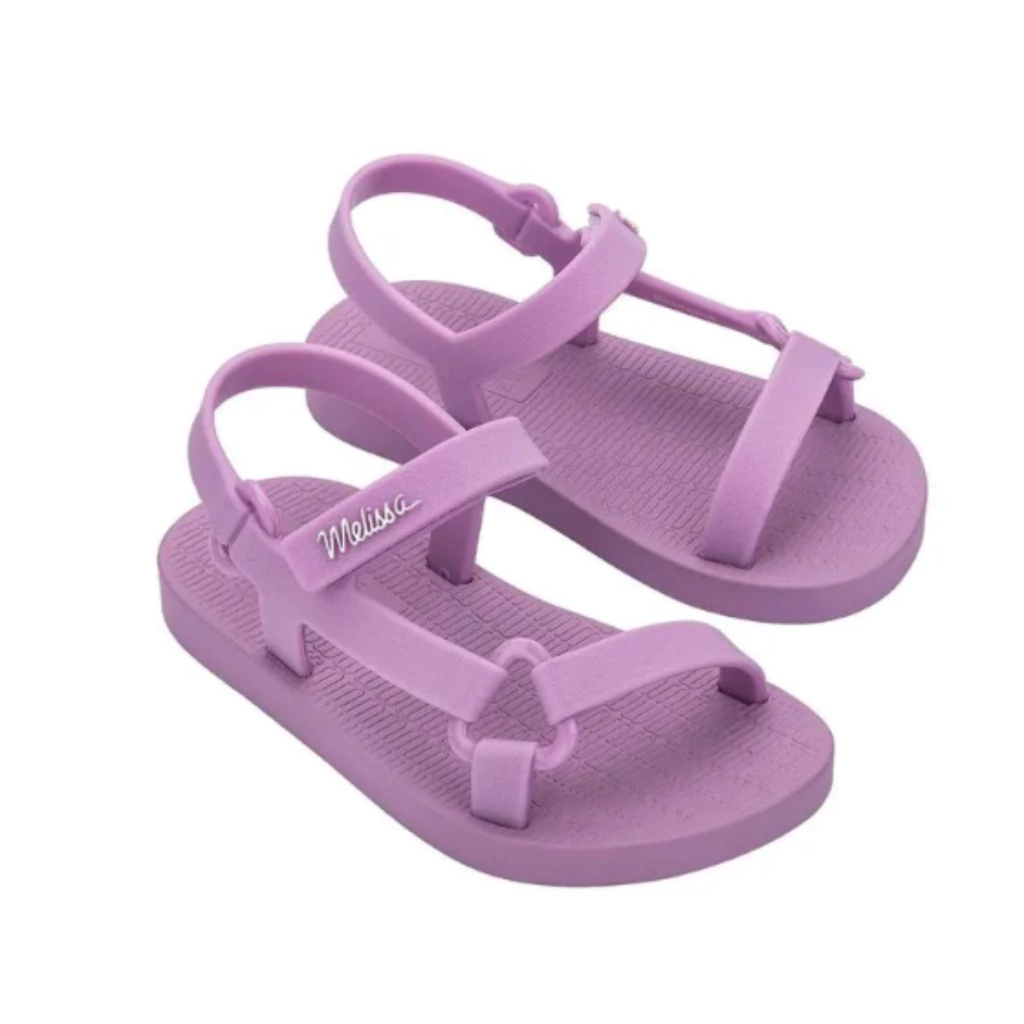 A Melissa Mini Sun Downtown Baby é puro estilo e conforto para os pezinhos dos pequenos. Com design moderno, tiras largas e fecho prático, ela garante segurança e charme nos passeios. Feita em Melflex, é macia, fácil de limpar e cheia de personalidade. Ideal para dias quentes e looks descolados.