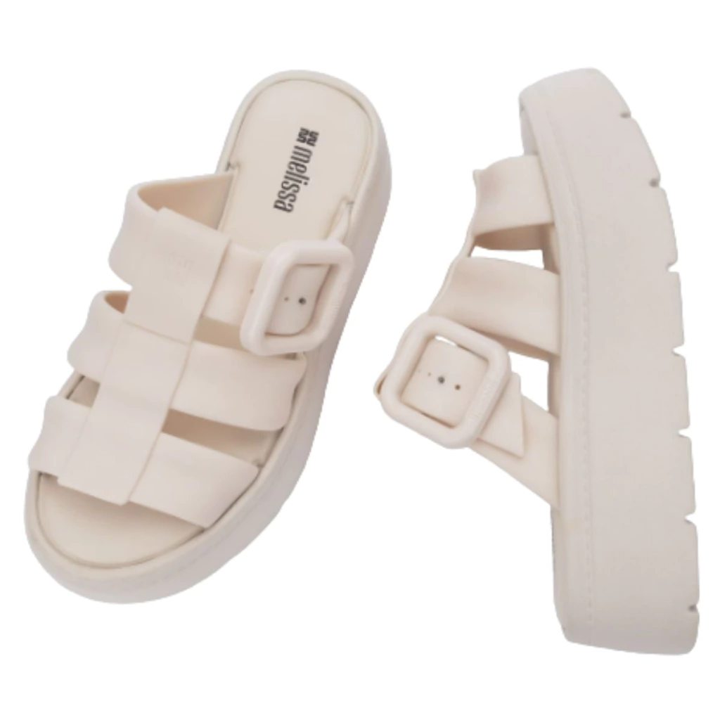 A Melissa Pump Platform 37802 é uma sandália plataforma em PVC com design moderno e impactante: possui duas tiras largas sobre o cabedal que garantem ajuste e estabilidade, além de fivela lateral de destaque, proporcionando visual fashion com conforto para o dia a dia.Feita em material Melflex (versão de PVC da Melissa) que é macio, atóxico e vegano, este modelo combina o solado plataforma (que dá maior elevação e presença no look) com acabamento limpo e detalhes marcantes. Ideal para quem busca uma peça versátil, que vai do casual “arrumadinho” ao mais urbano com atitude.
