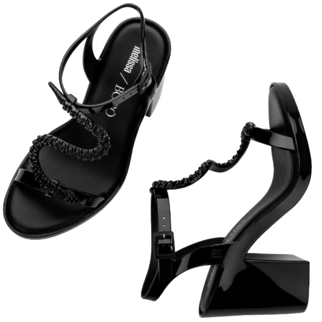 A Melissa Snake Block + Bo.Bô 35775 é uma sandália feminina que combina elegância e ousadia, fruto da colaboração entre a Melissa e a marca Bo.Bô. Com um design arrojado, destaca-se pelo cabedal com aplicação de cobras brilhantes, adicionando um toque de glamour ao visual.