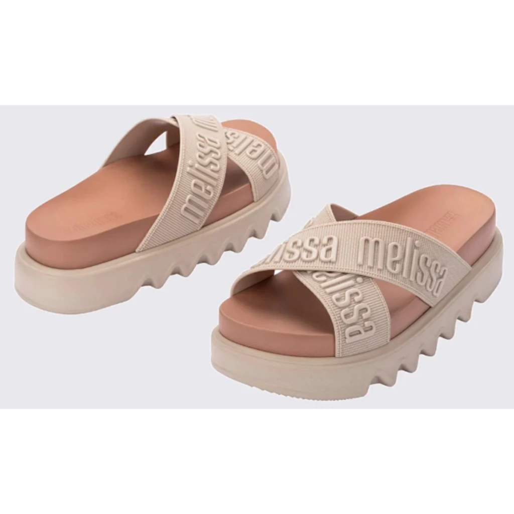 O Melissa Tamanco Cross M-Lover Platform 37368 traz um visual ousado e urbano, perfeito para quem busca um toque de atitude no look do dia a dia. Com tiras largas em formato de "X", o modelo oferece um design marcante e moderno, com o logo Melissa em alto-relevo que reforça a identidade fashion da marca. A palmilha em EVA garante conforto extremo, enquanto o solado plataforma tratorado de aproximadamente 6 cm proporciona altura com estabilidade. Feito em Melflex, material exclusivo da Melissa, o tamanco é vegano, leve, resistente à água e fácil de limpar. Ideal para compor produções casuais com um toque fashionista, é a escolha certa para quem quer conforto e estilo em todos os momentos.