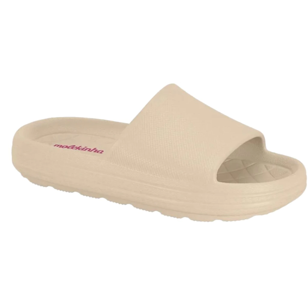 O Chinelo Nuvem Infantil Molekinha traz conforto e estilo para os pezinhos das pequenas. Produzido em material leve e macio, possui design slide com tira única e palmilha anatômica que garante sensação de leveza ao caminhar. O solado em EVA proporciona aderência e flexibilidade, ideal para o uso no dia a dia ou momentos de lazer. Com visual moderno e divertido, é uma ótima escolha para compor looks confortáveis e charmosos.