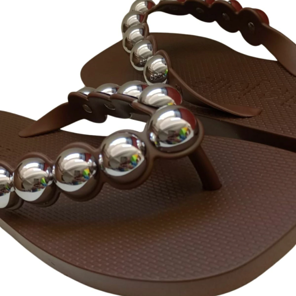 Alerta de lançamento! Uma nova versão do chinelo Refresh chega para colorir seus dias. Agora, com uma gáspea com maxi esferas metalizadas, adicionando um ar maximalista e moderno. O modelo pode ser usado desde a praia até o trabalho. Possui bico quadrado, solado leve, macio e confortável. Altura salto 1,5 cm, lembre-se, o J-lastic (material exclusivo da Petite Jolie) é tão sensível quanto couro, tecido ou qualquer outro material. Por isso, esteja atenta a todas as dicas de cuidado. Cuide da sua Petite Jolie com todo o carinho que ela merece!