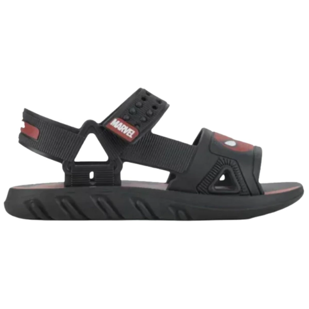 Confeccionada em PVC resistente de alta qualidade, a sandália é leve, flexível e fácil de limpar — ideal para brincar e correr. Seu solado emborrachado com frisos garante aderência e segurança em superfícies diversas. Com acabamento em preto, azul e vermelho, é o modelo ideal para complementar looks infantis com personalidade Marvel.