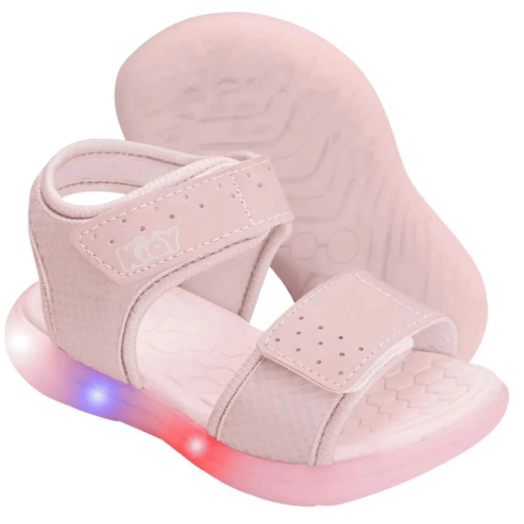 O grande diferencial fica por conta do solado emborrachado com luz de LED, que pisca ao caminhar, tornando cada passo uma experiência divertida e estimulante para as crianças.
