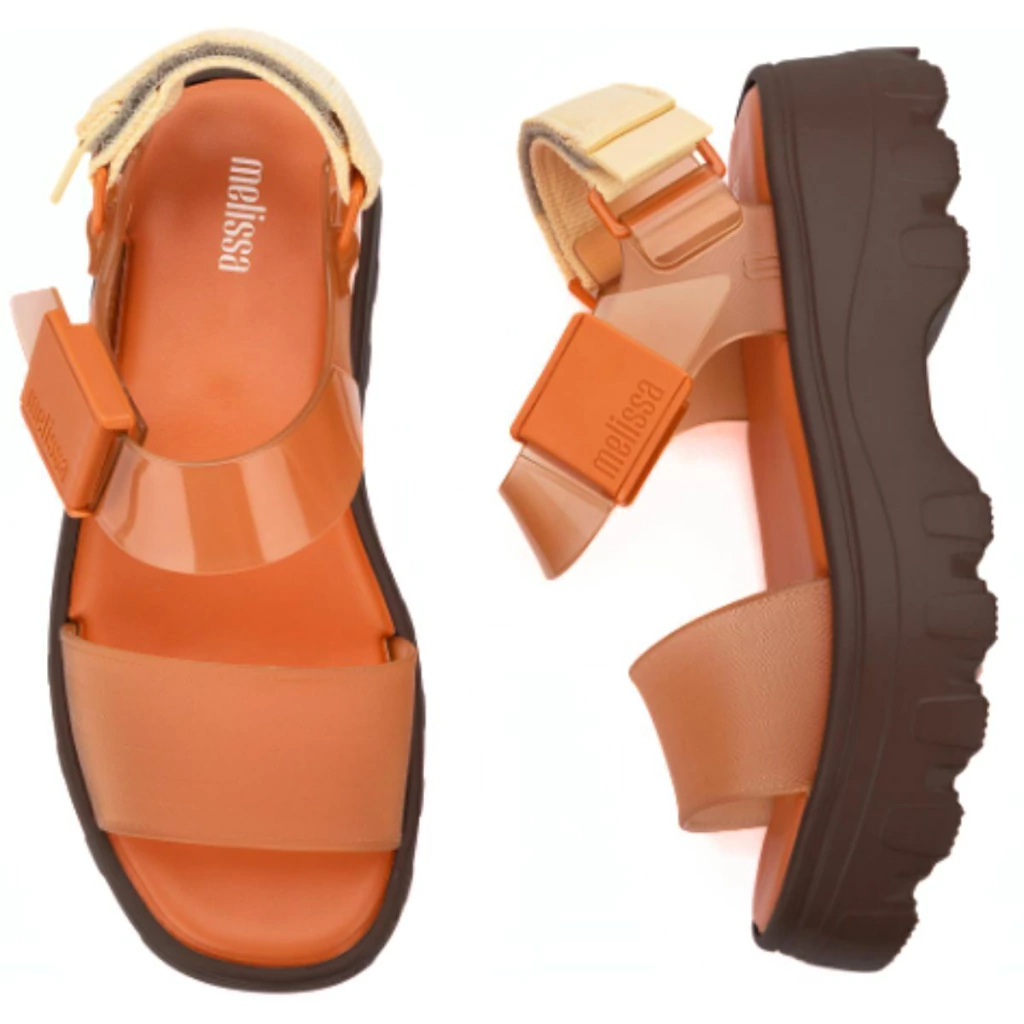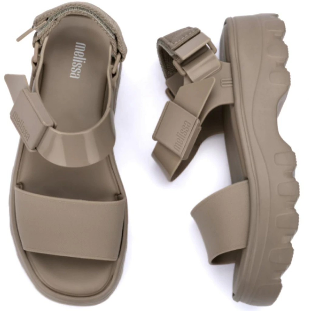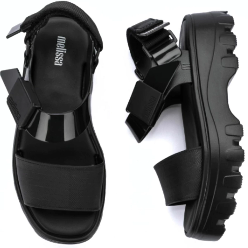 A Melissa Kick Off Sandal destaca-se por seu design robusto e contemporâneo. Seu solado tratorado em EVA proporciona leveza e conforto, enquanto as tiras ajustáveis com fechamento em velcro garantem um ajuste personalizado. Confeccionada em Melflex®, material exclusivo da Melissa, é vegana, reciclável e possui o característico aroma de chiclete.