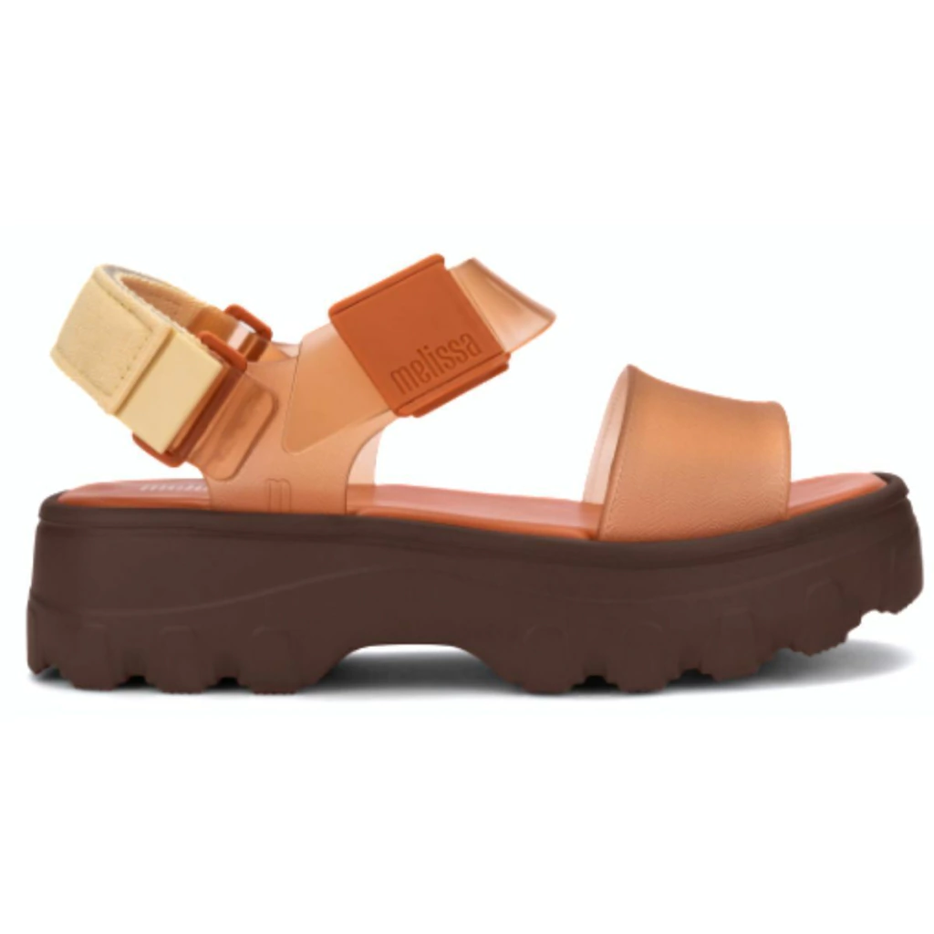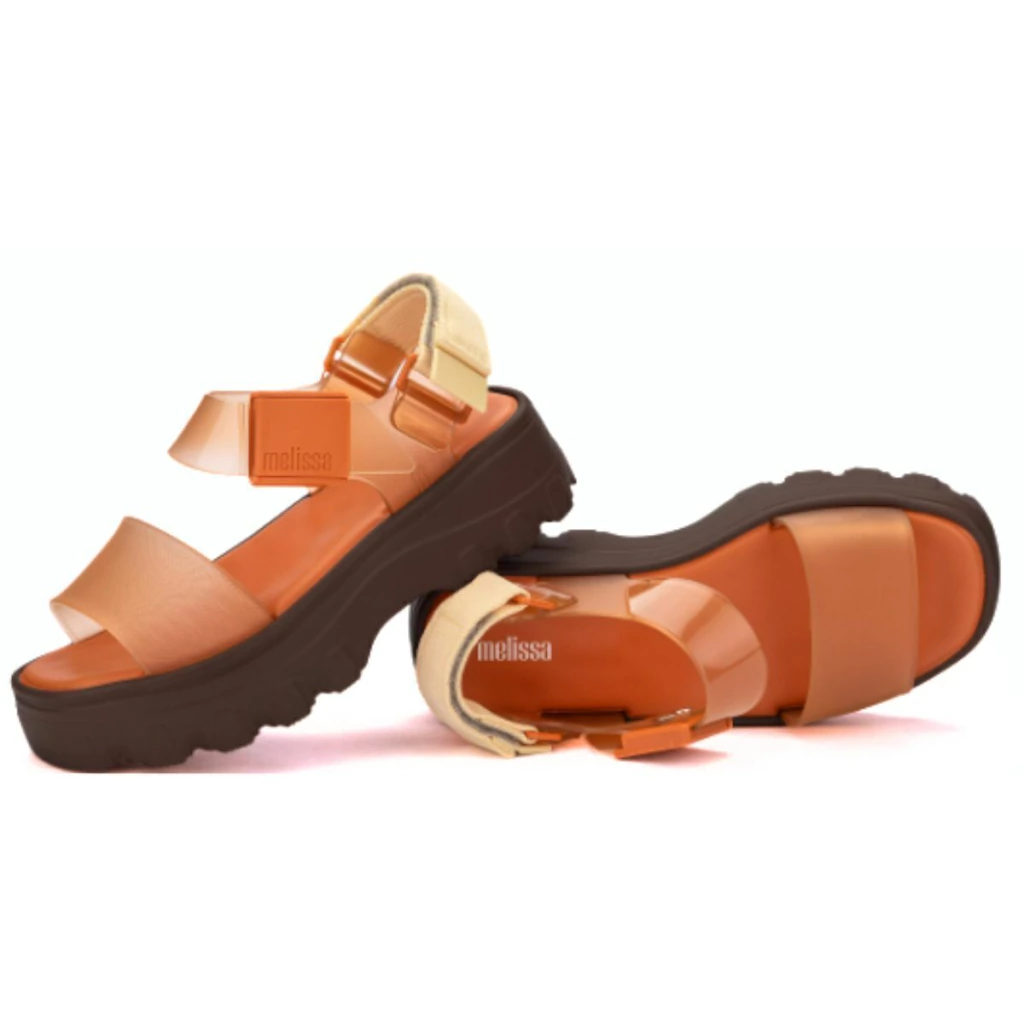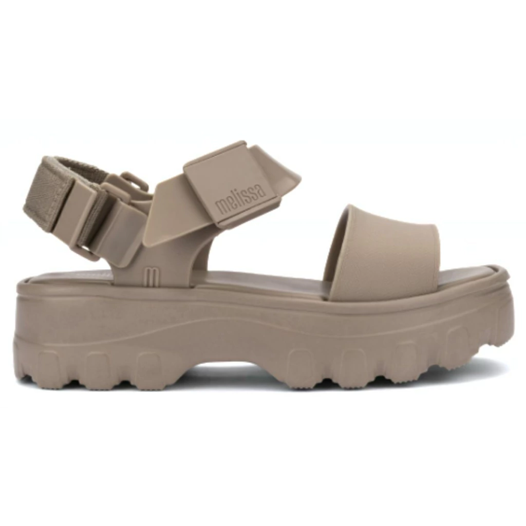 A Melissa Kick Off Sandal destaca-se por seu design robusto e contemporâneo. Seu solado tratorado em EVA proporciona leveza e conforto, enquanto as tiras ajustáveis com fechamento em velcro garantem um ajuste personalizado. Confeccionada em Melflex®, material exclusivo da Melissa, é vegana, reciclável e possui o característico aroma de chiclete.