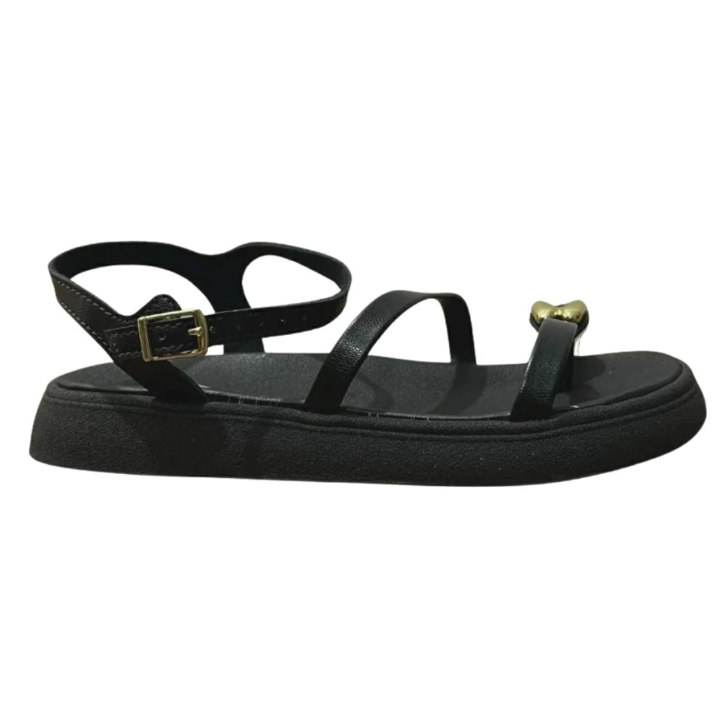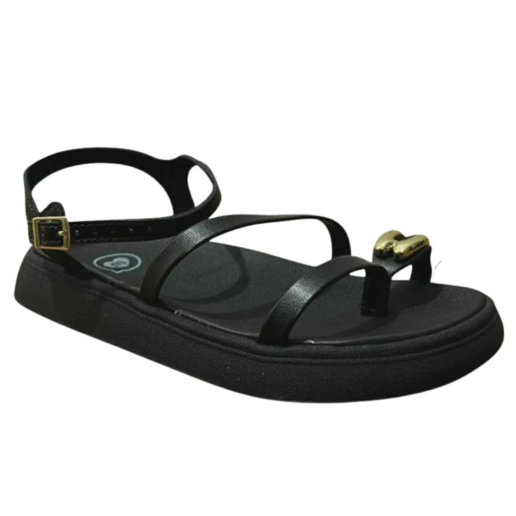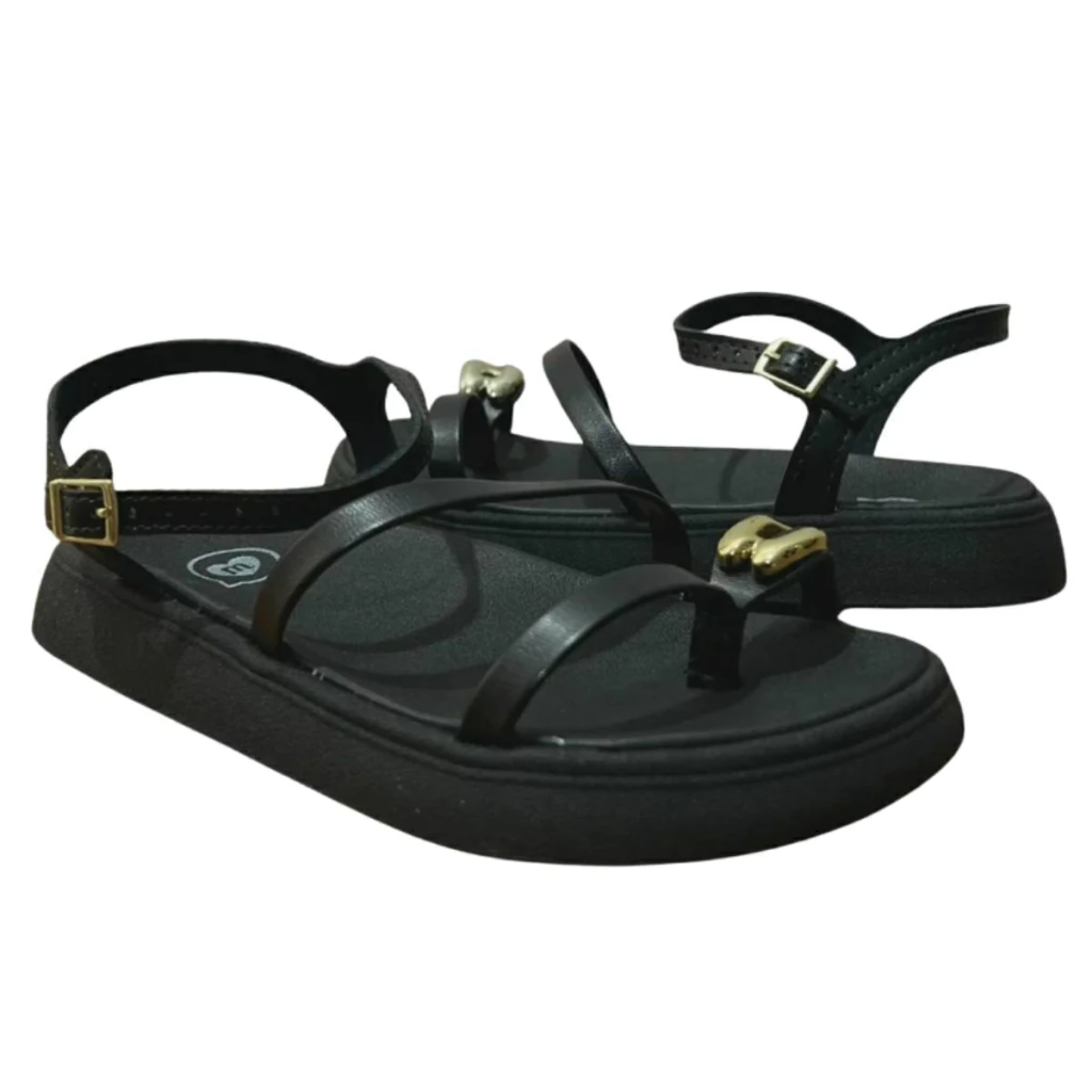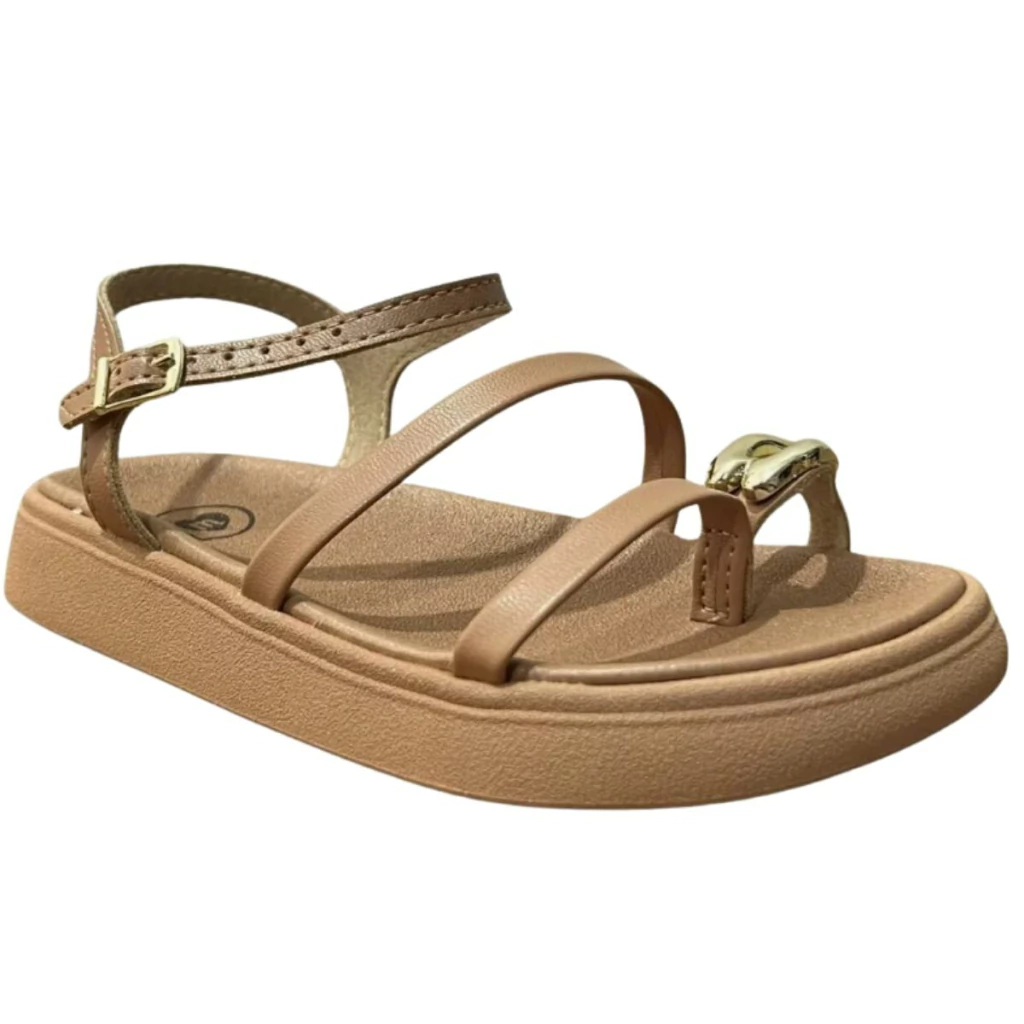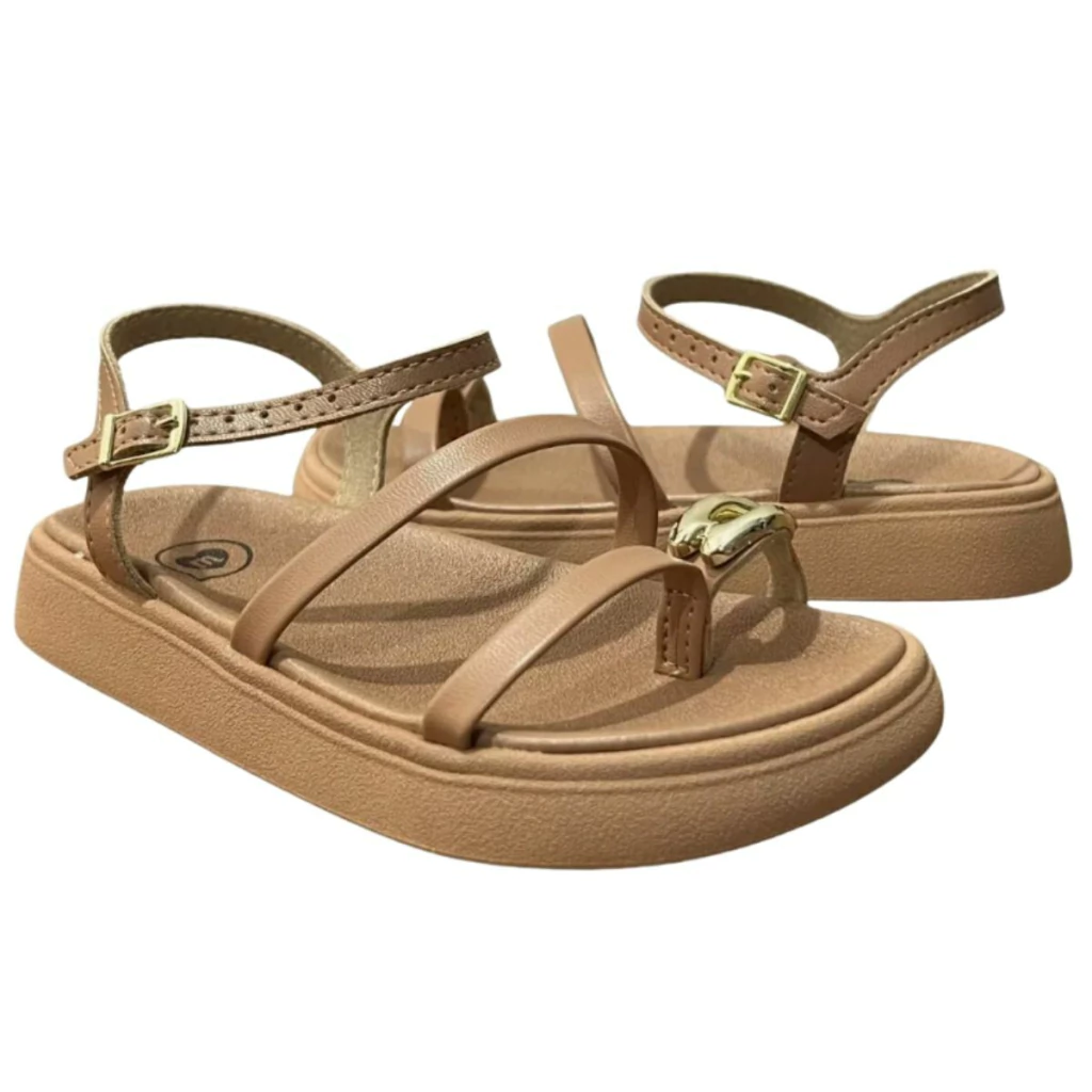 Seu fechamento é por fivela no tornozelo, permitindo um ajuste seguro e confortável. A palmilha macia proporciona bem-estar durante o uso, enquanto o solado emborrachado e levemente elevado garante estabilidade e segurança a cada passo.