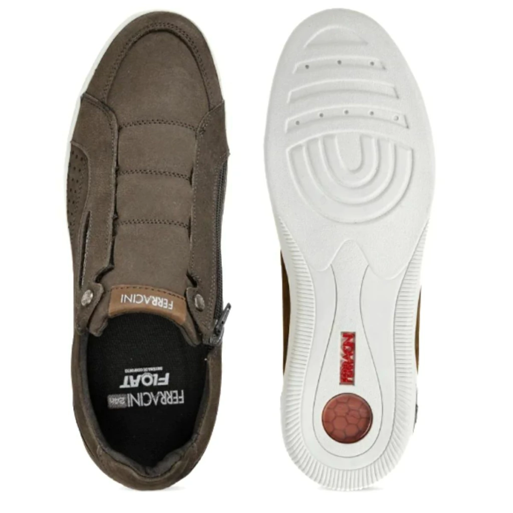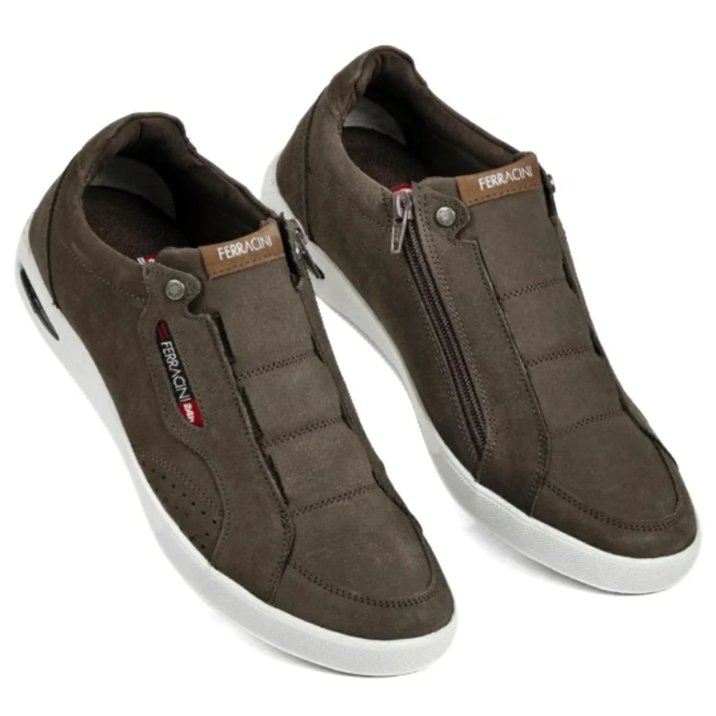 O Sapatênis Ferracini Blady 1459E é ideal para homens que buscam elegância e conforto no dia a dia. Produzido em couro nobuck de alta qualidade, possui design moderno com acabamento premium. A praticidade do zíper lateral facilita o calce, enquanto a tecnologia FLOAT garante excelente amortecimento. A palmilha em PU anatômico e a forração interna em nylon espumado oferecem conforto prolongado mesmo após horas de uso. O solado de TR emborrachado com sistema de bolha contribui para absorção de impactos e aderência ao solo. Versátil e estiloso, combina com diversos looks casuais e urbanos.